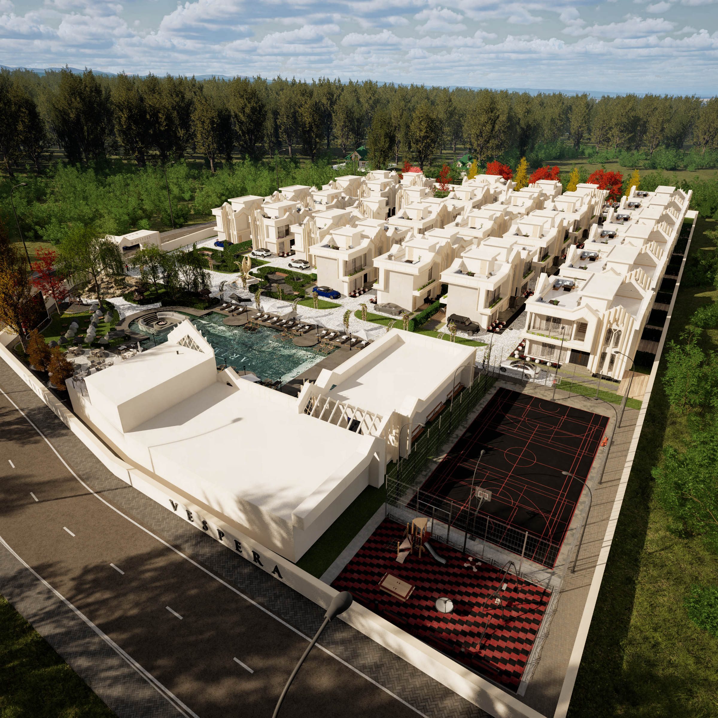 SARIMERT YAPI’nın imzası haline gelen heykel çalışmaları, misafir otoparkı, misafirleriniz ve alışverişleriniz için hizmet veren golf arabaları, elektrikli araç şarj istasyonu, profesyonel peyzaj alanları ve günün yorgunluğunu atmanız için tasarlanmış hamam, sauna ve buhar odası ile Vespera’da kaliteyi ruhunuzun derinliklerine kadar hissedeceksiniz.