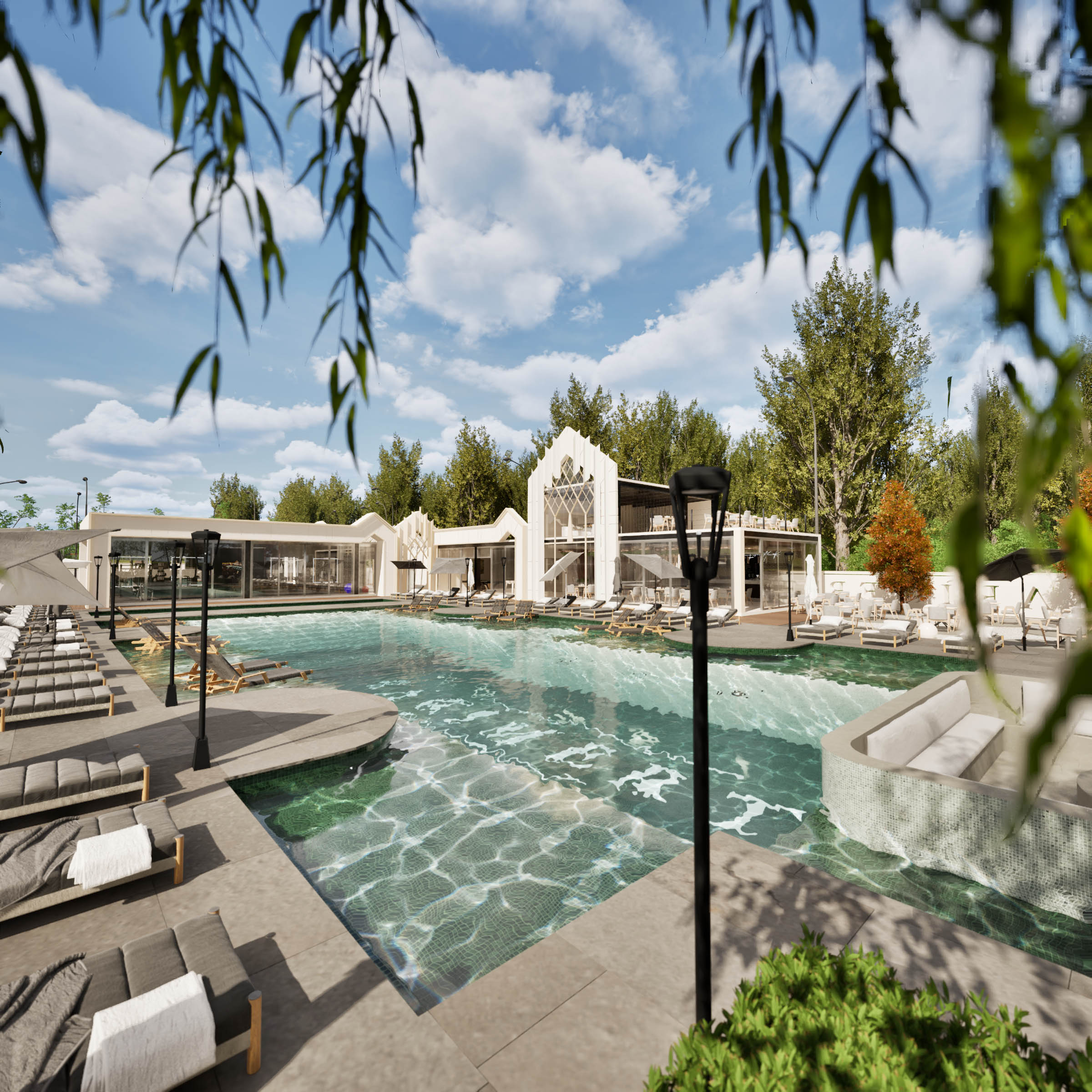 Kademeli derinlik yapısıyla güvenli yüzme keyfi, çocuklar için ayrı havuz bölümüyle birleşiyor.